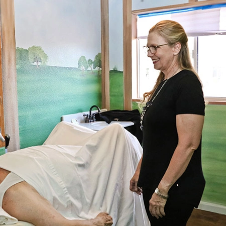 Water flows into the colon, encouraging a natural release. You remain in a comfortable supine position on the pre-molded fiberglass table.